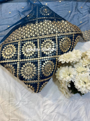 π 2.5 Yards Soft Chiffon Shirt + Back with Fully Heavy Embroidery & 9MM Sequin Work