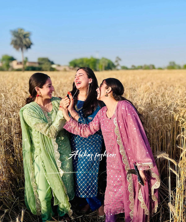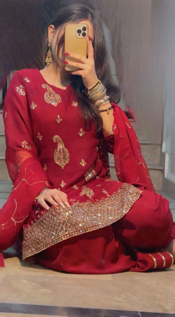πβ¨ ALL NEW ARRIVAL β Soft Chiffon 3PC Dress with Fine Embroidered Pules Work β¨π