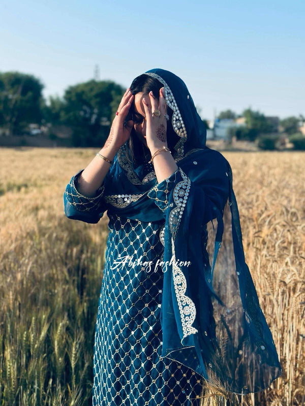 πΉ Front: 45 inches / 1.95 Yards β Delicately adorned with fine pules work β beautifully arranged thin embroidered panels for a graceful, luxurious look