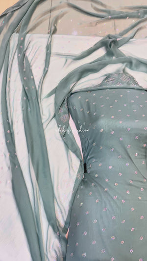 New Turkish Stone β 3 Piece Pure Chiffon Suit (MINT-GREEN)